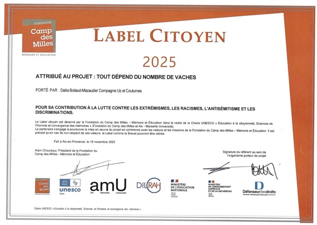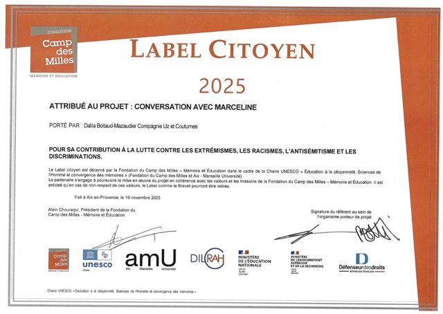 Le label citoyen est décerné par la Fondation du Camp des Milles – Mémoire et Éducation dans le cadre de la Chaire UNESCO « Éducation à la citoyenneté, Sciences de l’Homme et convergences des mémoires ». (Fondation du Camp des Milles et Aix – Marseille Université)