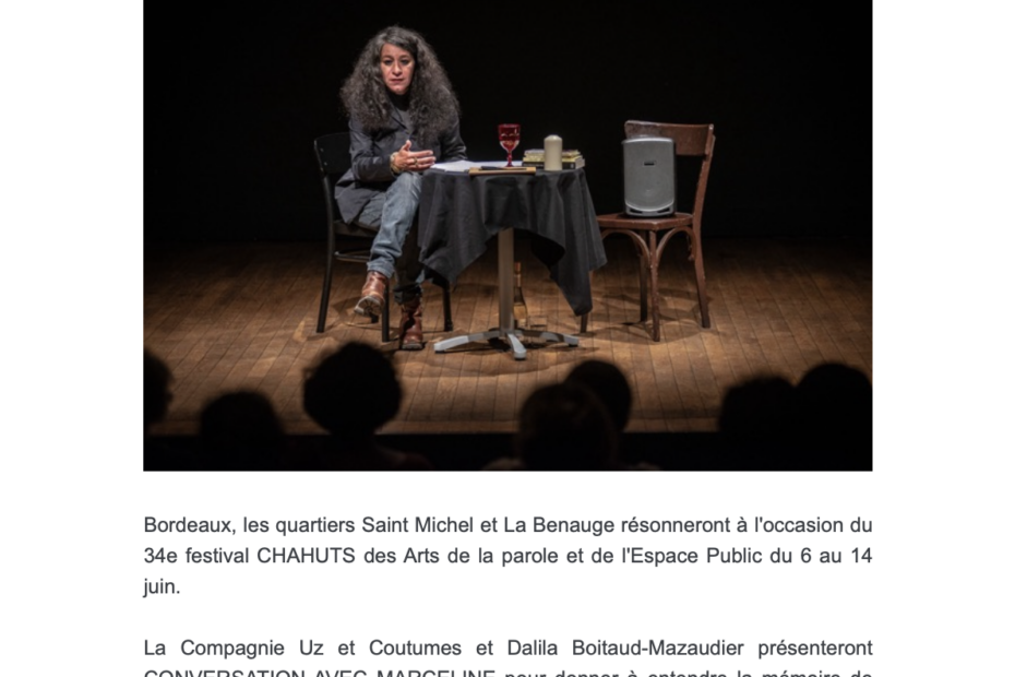 Accueil » Lettre d’infos Juin 2025 – Conversation avec Marceline au Festival ChahutsLettre d’infos Juin 2025 – Conversation avec Marceline au Festival Chahuts Lettre info juin 2025 CaM à ChahutsTélécharger